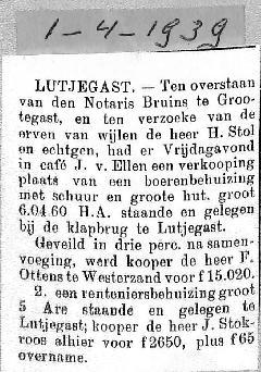 Namen: notaris Bruins, verkopers erven H.Stol, café J. van Ellen, koper F.Ottens, koper J. Stokroos