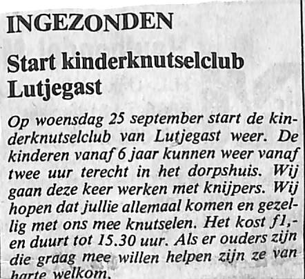 nieuwjaarswensen; K. en M. Oldenburger, Notebomer's bouwbedrijf, Firma F. Zuidema, A. J. Scheper, Velko-Therm B.V., loonbedrijf Wierda, D. v/d Bijl, H. Teeninga, firma K. G. v/d Velde &Zn, Jan en Janny Stokroos, M. en H. Meijer, R. Huistra