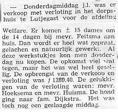 Hoeksema, Huisma, Dijkstra, Feitsma verloting bracht f 1289,40 op