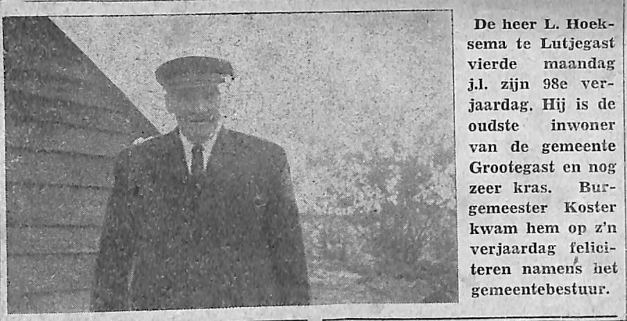 L. Hoeksema is de oudste bewonder van gemeente Grootegast (98jr.)