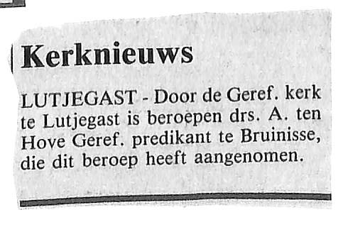 intrede Ds. A. ten Hove