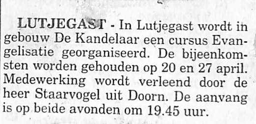 Bij het jaarfeest op 25 maart j.l.werd de bestuursverkiezing gehouden voor een nieuw lid van de jeugdraad.Aftredend lid A. v.d. Velde-Hoekstra werd vervangen door G. van de Vaart-Hoekstra. Avond werd geeindigd door J. Zwama en E.M. de Vries wenste iedereen wel thuis.