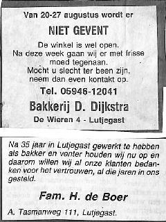 bakker H. de Boer houd er mee op en bedankt iedereen.