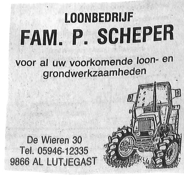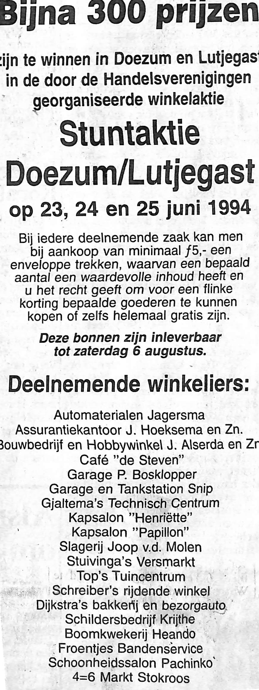 advertenties van: kringloopwinkel Lutjegast, garantmarkt Stokroos, Zuidema's transport, loonbedrijf P. Scheper, M. Oldenburger, installatiebedrijf M. Jongsma