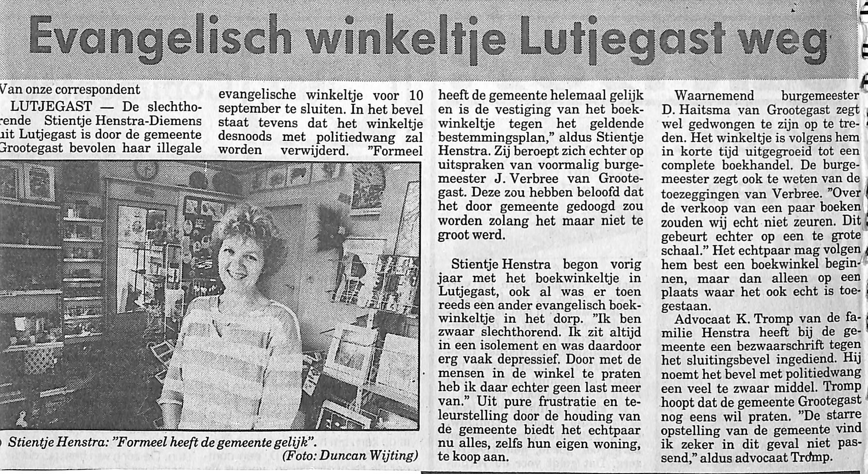 de Evangelische winkel van Stientje Henstra moet weg